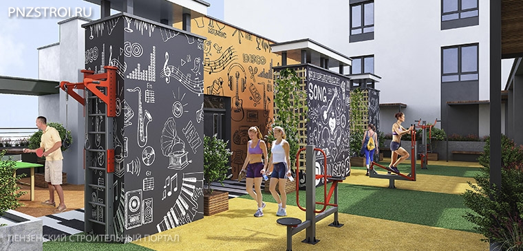 На крышах шестого спроектированы четыре площадки. Две детские – отдельно для малышей и подростков. Третья – лаундж-зона с беседками и шезлонгами. Четвертую оборудуют для занятий спортом.